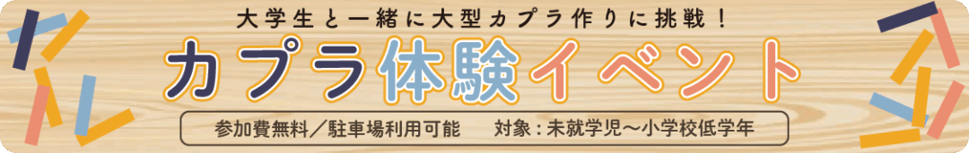 ボランティアサークル「クレヨン」の学生たちと一緒に、カプラ作りを楽しみましょう。